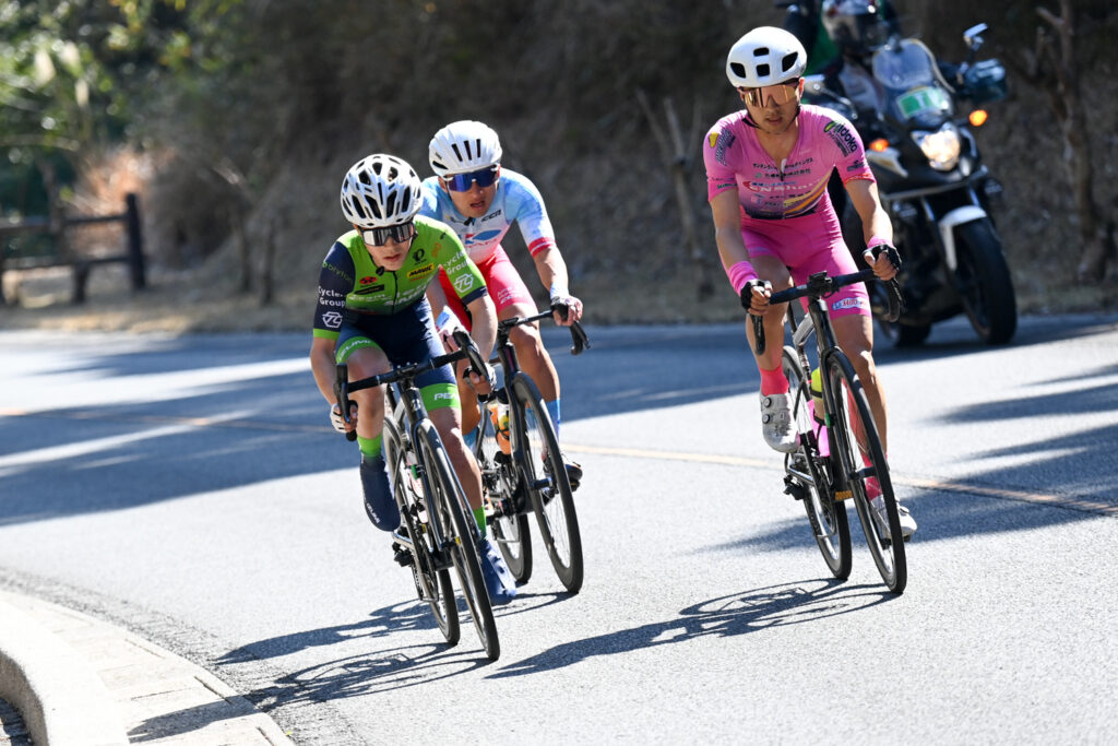 しかし集団内では玉城がパンクで、木下が落車でそれぞれ脱落し3名での展開。