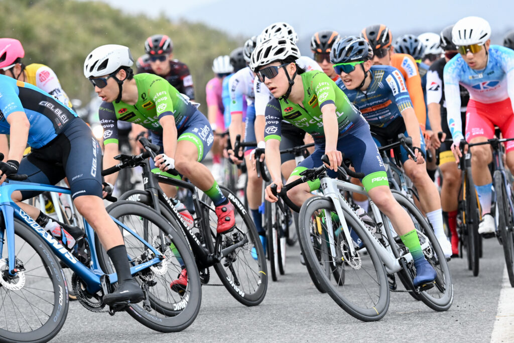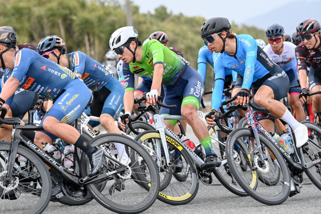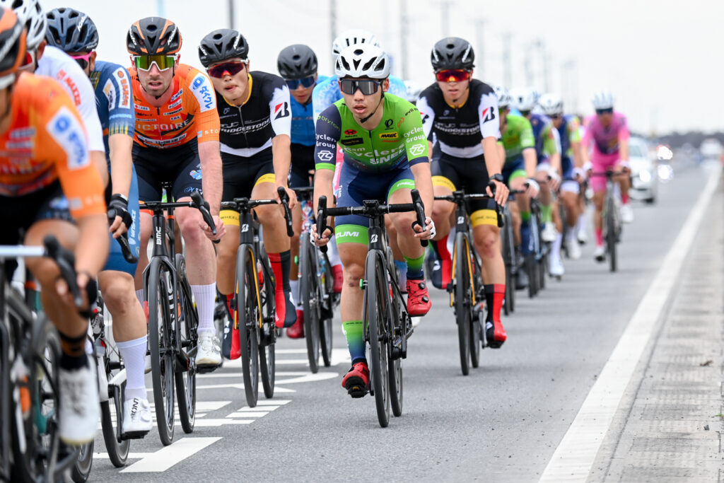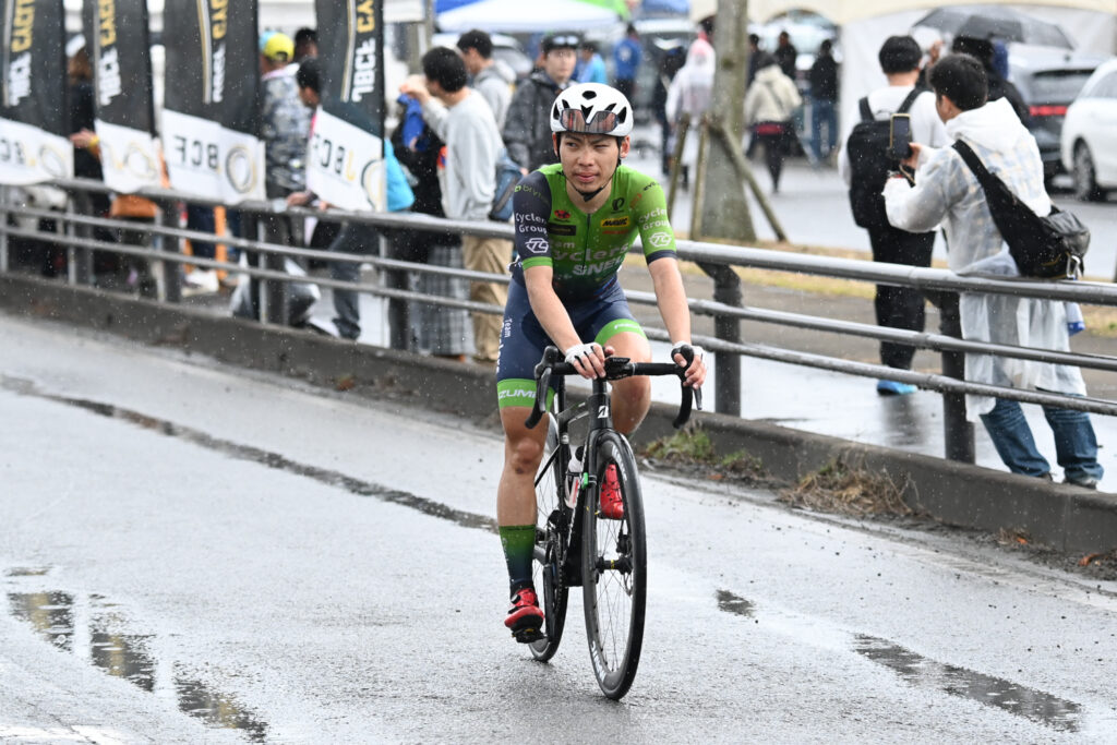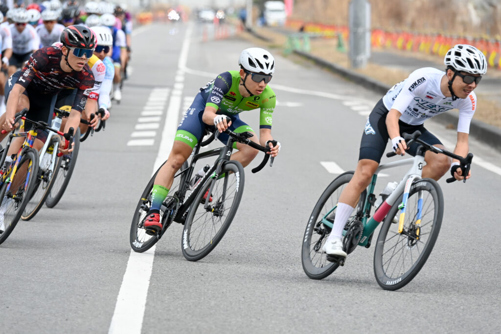 決定的な逃げは決まらず集団のまま終盤へ。TCSは一成を中心に集団前方でまとまってラスト2周へ入ります。