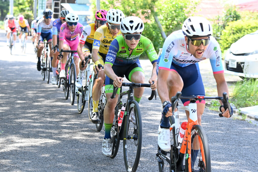 レースは序盤から大きな落車が発生、佐藤宇志が巻き込まれてしまいます。中断後レースには復帰したものの、集団内では落車が続き今度は木下、松本などなどがそれぞれ巻き込まれてしまいます。