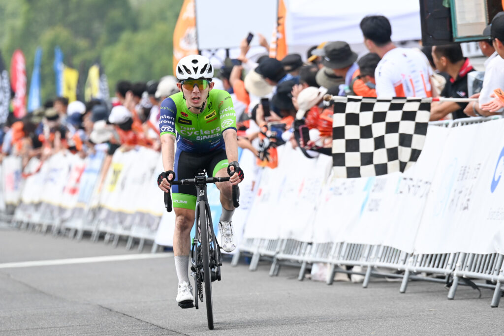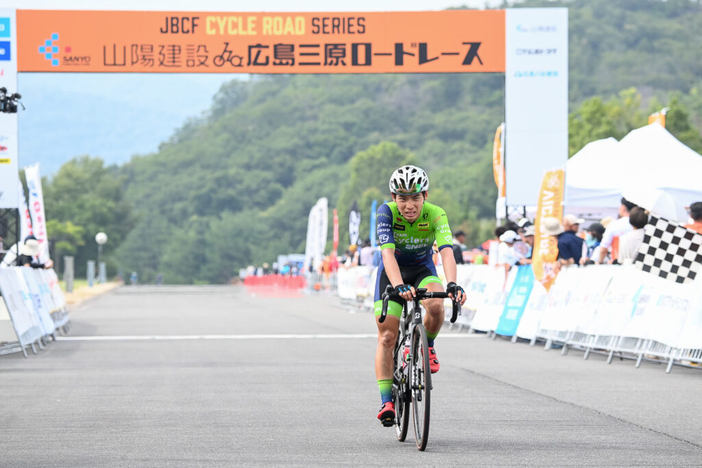 最終周回に入り、上りで金子選手(群馬グリフィン)が単独先行、そのまま逃げ切り優勝を果たしました。
