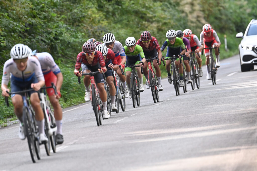 終盤、人数の減った先頭集団をとらえるべくメイン集団もアタックをかけあいながらペースアップ。