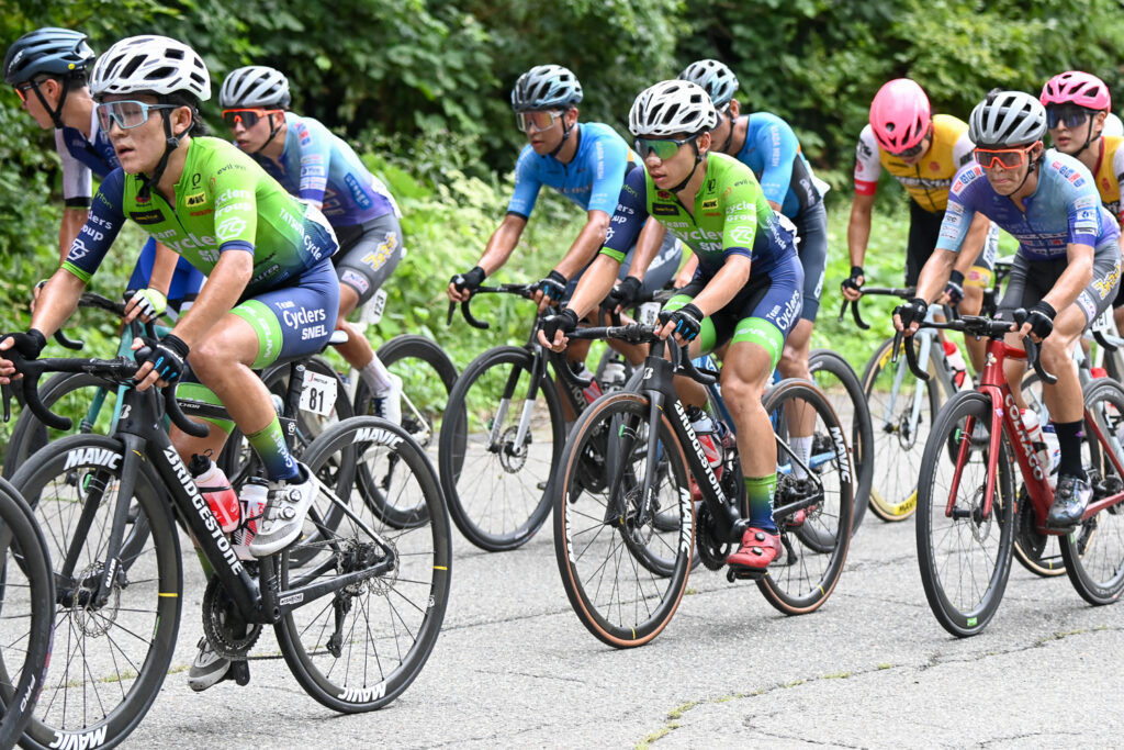 途中、松本と佐藤宇志がウェットな路面により落車しますがすぐに復帰、しかし木下、松本と後半に向け脱落してしまい、集団内にはTCSは3名という厳しい状況となりました。